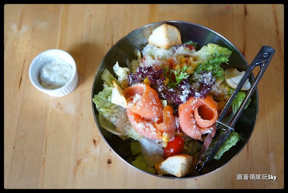新鮮的生菜配上店家特調的凱薩沙拉醬,