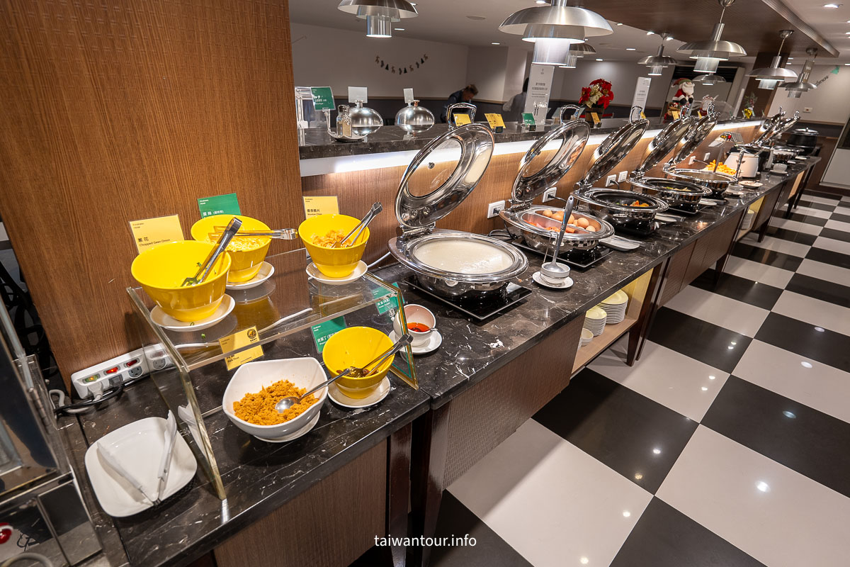 【康橋商旅彰化員林館】的早餐在四樓,餐點是誠意滿滿的,從現煎的荷包蛋、金黃酥脆的蘿蔔糕和香氣撲鼻的蔥油餅,到多樣化的現炒時蔬、清粥小菜、各式麵包、沙拉、水果與穀物片,種類繁多,完全可以當作早午餐來吃,每種夾一點就飽到翻過去。