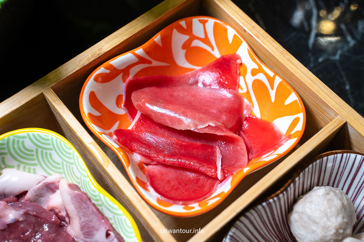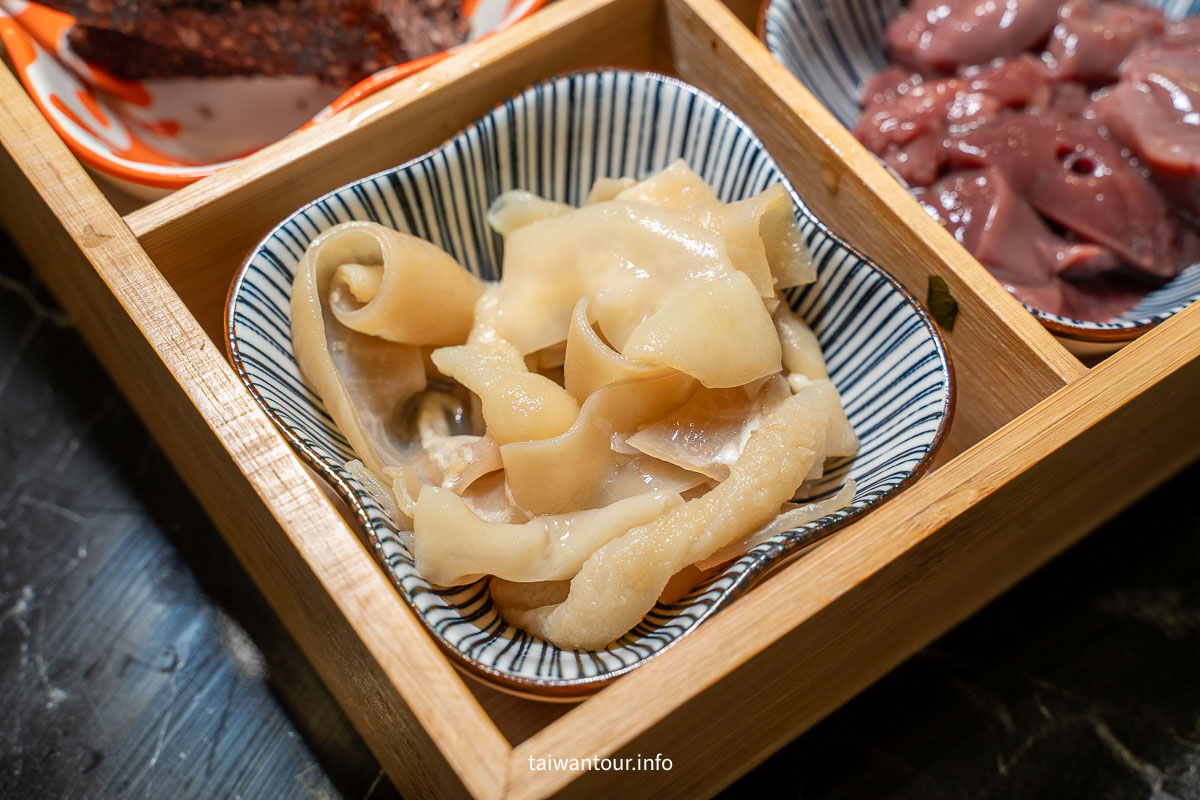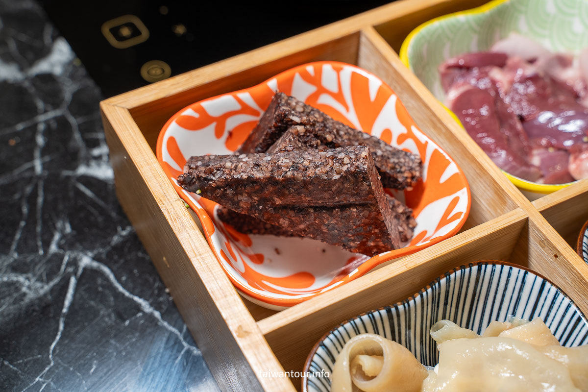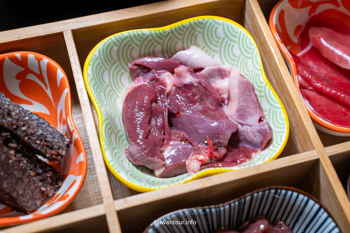 【鵝與鍋】主打全鵝鍋物,那麼除了鵝肉片,內行人一定會點的一鵝百味套餐,裡面有鵝腸、鵝腱、鵝心、鵝肝、鵝肉丸和鵝血糕,在外面還不一定吃的到呢!