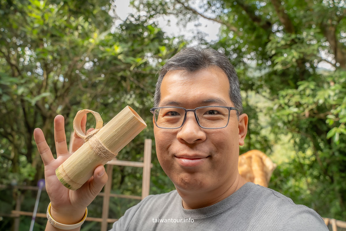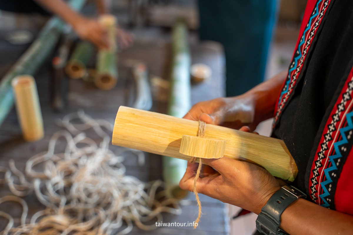 大家邊體驗邊摸索,慢慢把竹子去皮,讓竹子的濕氣可以釋放,再綁上杯子的扣環才算完工,雖然族人說這是消耗品,因為天然材質用久了可能會發霉,但看著自己親手製作、獨一無二的竹杯,那份成就感和滿足感,真的超級棒!這不僅是一個杯子,更是我在部落裡,親手創造的一段回憶。